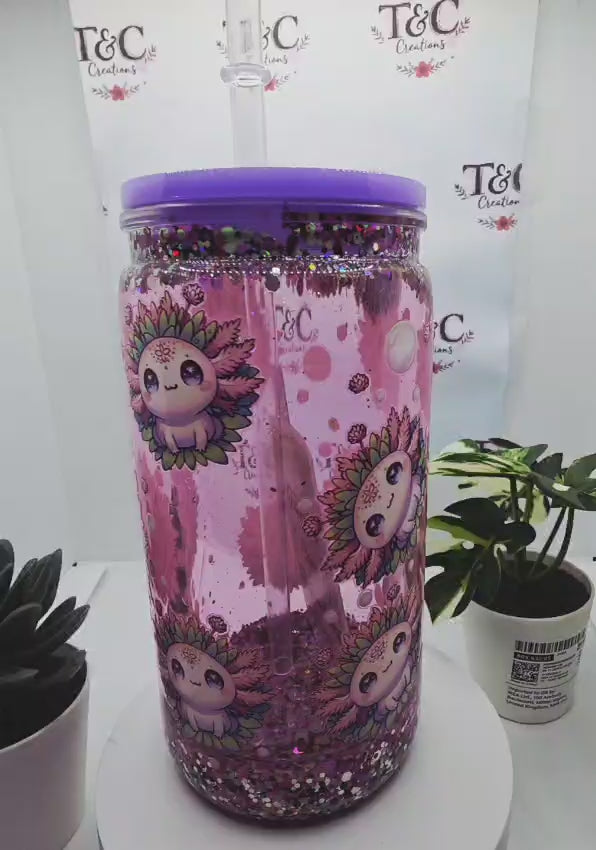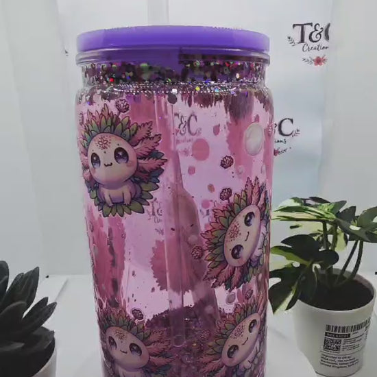 16 Oz Acrylic Snow Globe Tumbler "Axolotl Decal"