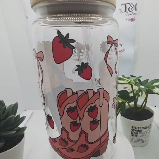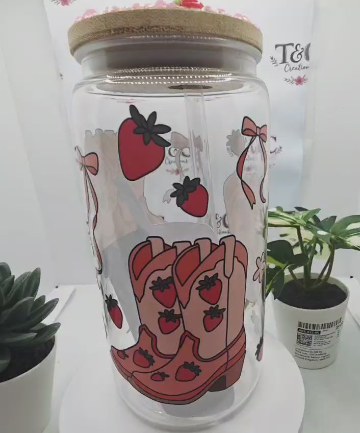 Saddle up for style with this charming 16 oz acrylic tumbler featuring a delightful cowboy boots and strawberries design. The eye-catching decal brings together rustic charm and sweet whimsy, perfect for sipping your favourite beverages in true Western flair. Topped with a sparkling gemmed lid that adds a touch of glamour, this tumbler is ideal for everyday use, road trips, or gifting to fellow country lovers. Durable acrylic construction keeps your drinks at the perfect temperature whilst the decorative lid makes every sip feel special.
