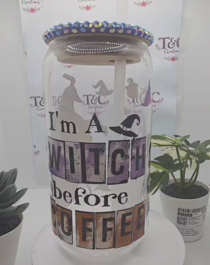 Embrace your magical side with this cheeky 16 oz glass tumbler, proudly declaring "I'm a witch" in eye-catching decal. Perfect for sipping your morning potion—whether that's iced coffee or something more mystical. The sturdy glass construction keeps your beverages at the ideal temperature, while the sparkling gemmed lid adds a touch of enchantment and keeps your drink secure on the go. A spellbinding choice for witches, magic enthusiasts, and anyone who loves a bit of witchy humour.