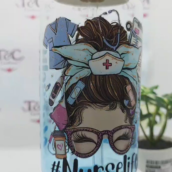 16 Oz Glass Tumbler “Nurse Life” Decal
