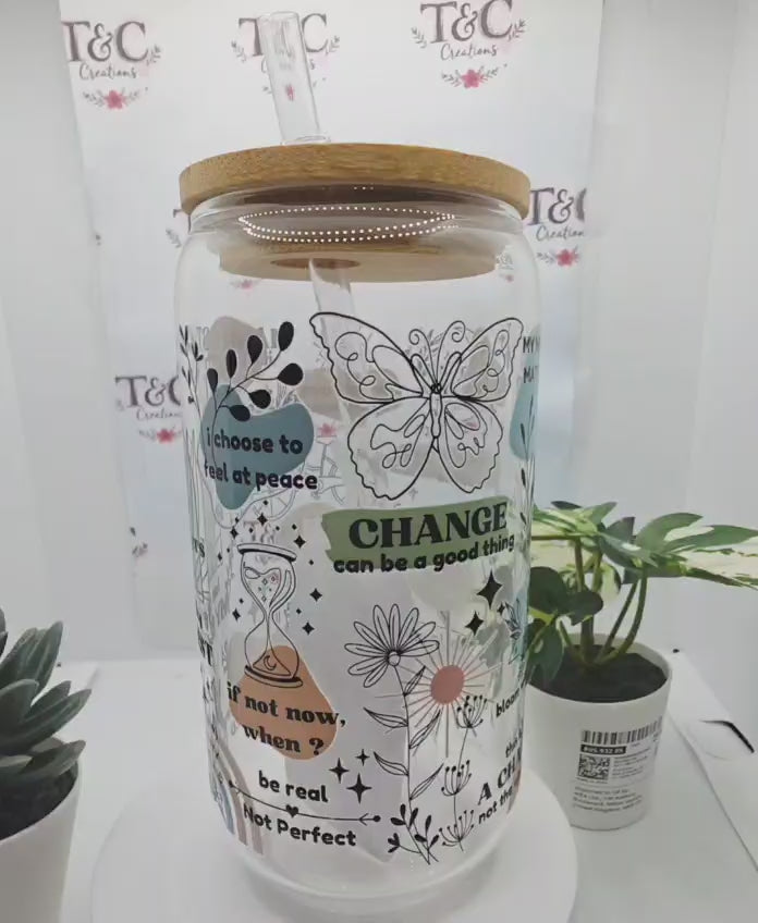 Start your day with a splash of motivation! This 16 oz glass tumbler features a cheerful "Daily Reminders" decal to keep you inspired with every sip. It's a gentle nudge to stay positive and focused. The durable glass construction keeps your drinks at the perfect temperature, while the eye-catching design brings a smile to your face. Whether you're treating yourself or gifting a friend who needs a little daily boost, this tumbler is your new favourite companion.
